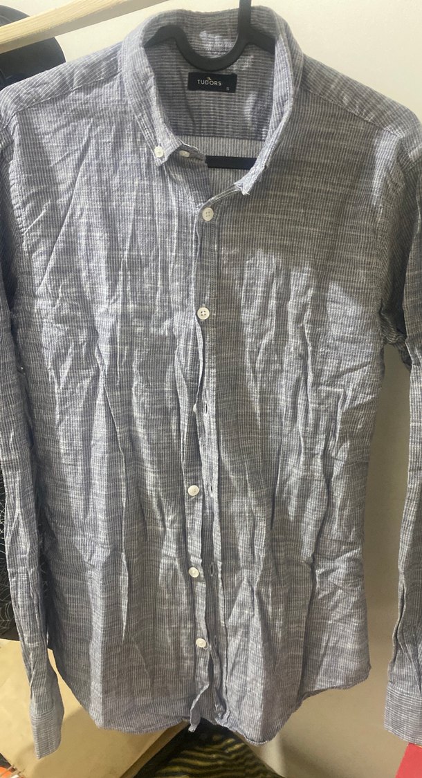 Gri , düğmeli ve yakalı uzun kollu erkek gömleği. günlük kullanıma uygundur. S beden slimfit