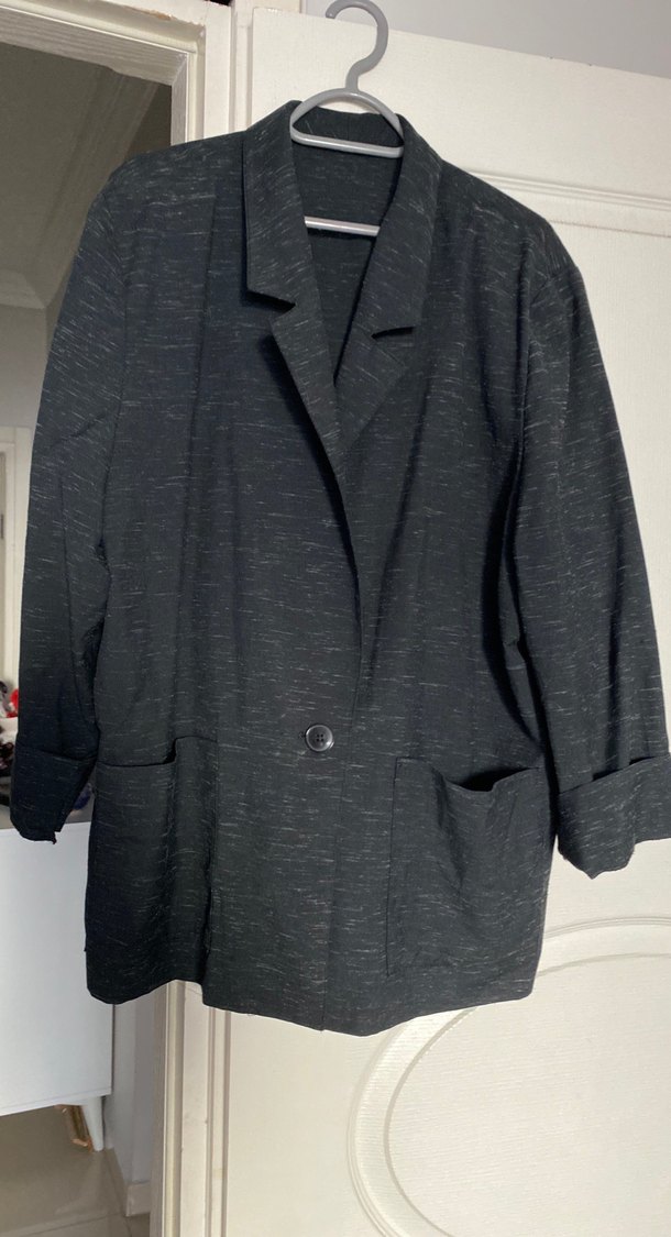 Düğmeli Gri Keten Kadın Blazer Ceket