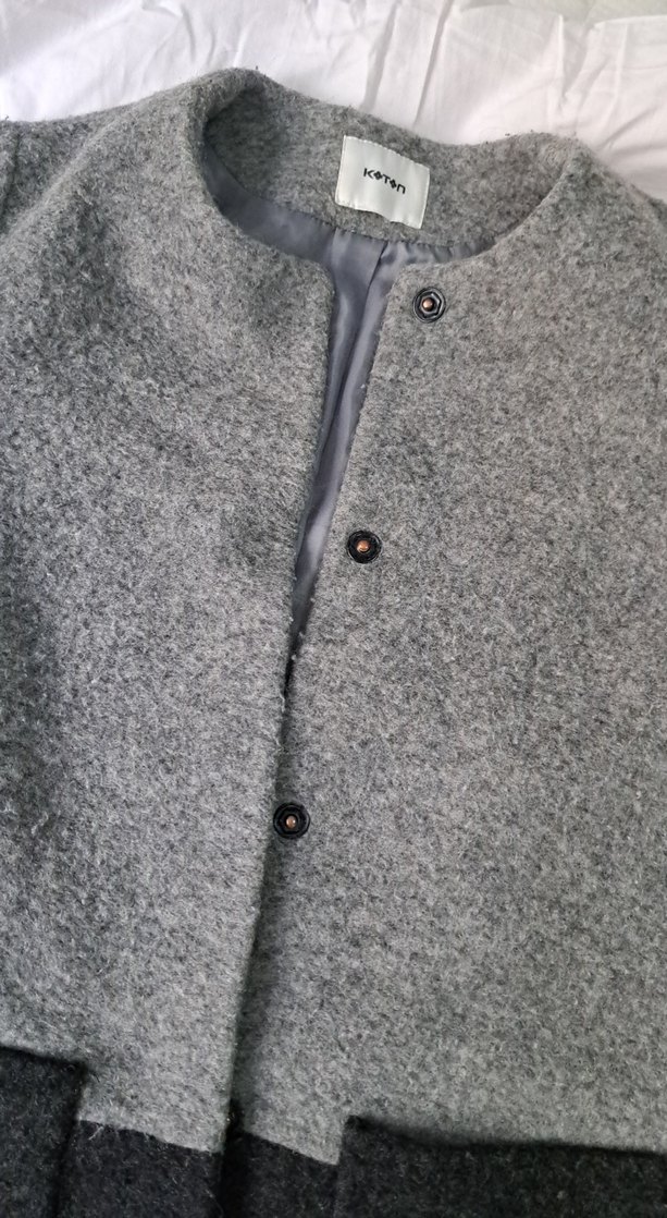 Düğmeli Gri Kısa Kaban koton