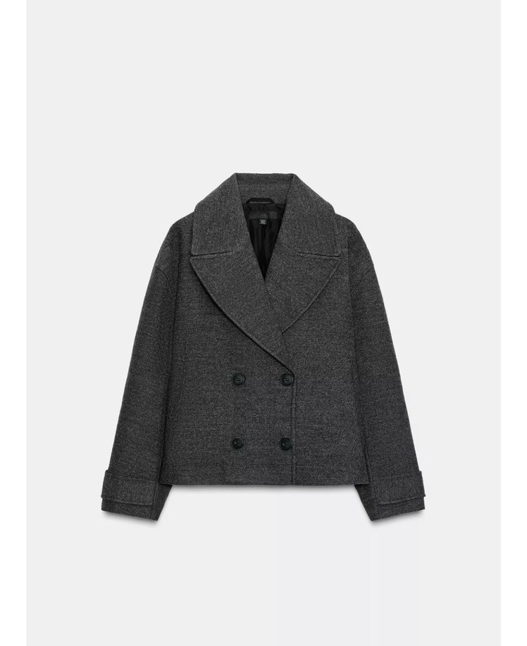 Düğmeli Gri Kısa Kadın Yün Kaban zara