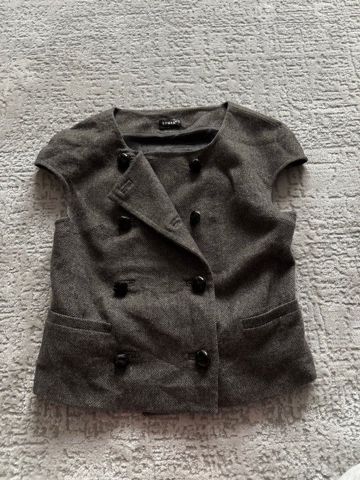 Düğmeli Gri Kısa Yün Kadın roman Yelek