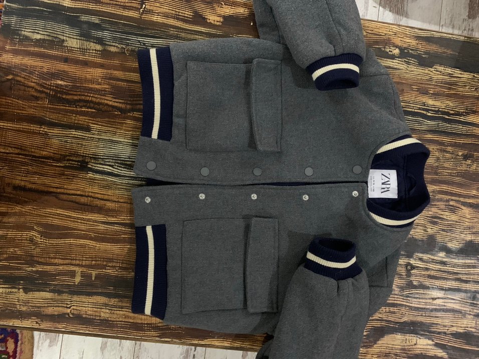 Çıt çıtlı notched lapel yakalı, düz gri renkte, rahat kesimli ve yumuşak polar kumaştan yapılmış erkek çocuk ceket. Sokak tarzı ve çizgili manşet detaylıdır.