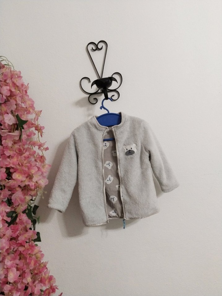 Düğmeli, bisiklet yakalı gri kız çocuk ceketi. Yumuşak ve sıcak kumaştan, nakış detaylı ve dar kesimdir.