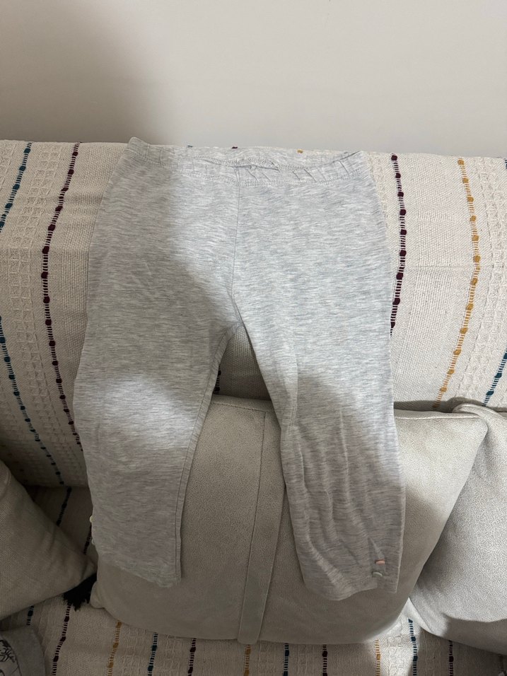 Düğmeli detaylı, pamuklu gri kız taytı. Rahat ve şık, günlük kullanıma uygun.