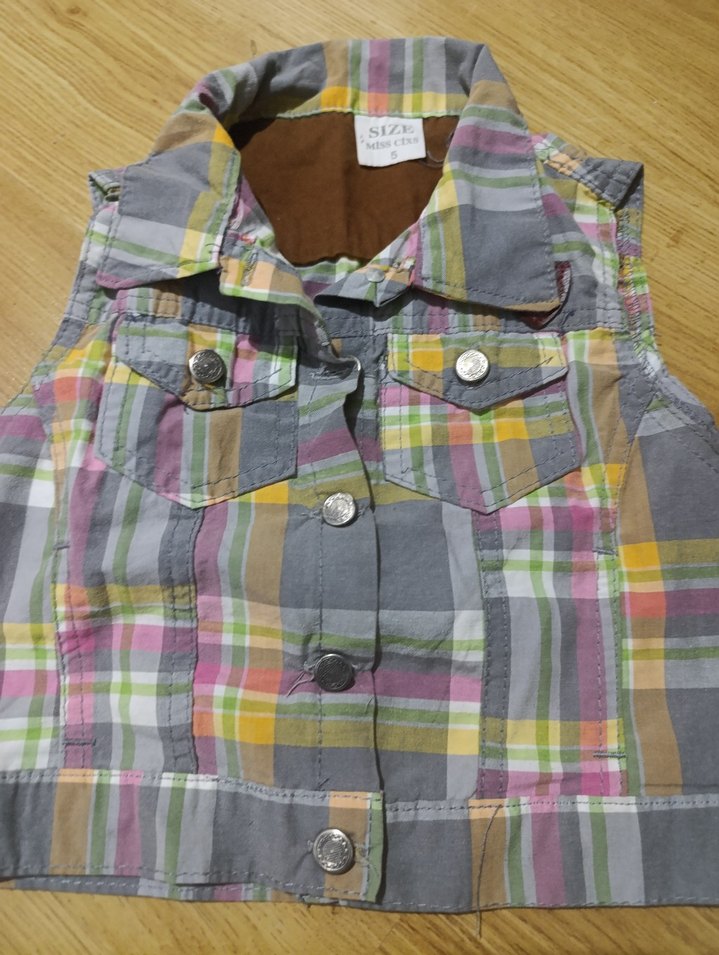 Düğmeli, yakalı ve kolsuz gri yelek, fitted kesim ve batik desenli tekstil kumaştan yapılmıştır. Trendy casual tarz için uygundur.