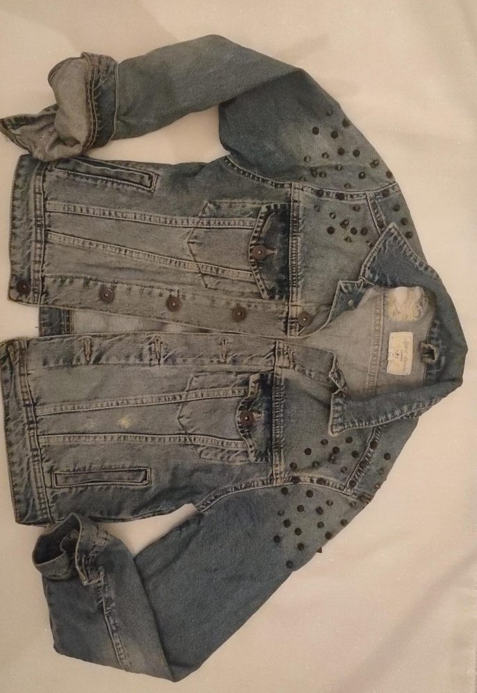 Gri renkli, düğmeli ve çentikli yakalı bu kot ceket, fitted kesime ve uzun kollara sahiptir. Perçin detaylarıyla grunge punk tarzını yansıtır.