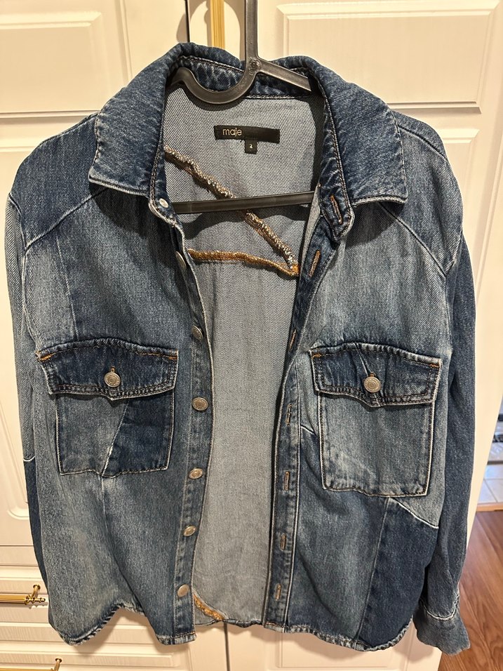 Orjinal sorunsuz. Düğmeli, uzun kollu, bol kesim kadın denim ceket. Çentikli yaka ve iki ön cepli, günlük sokak stili için uygun. #zara #maje #mango
