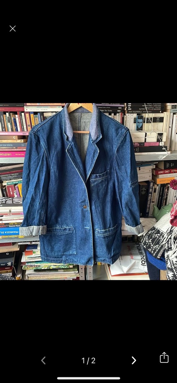 Düğmeli, gri-mavi renkte, notched lapel yaka ve uzun kollu kadın denim cekettir. Normal midi boyda, regular fit kalıptadır ve gündelik kullanıma uygundur.