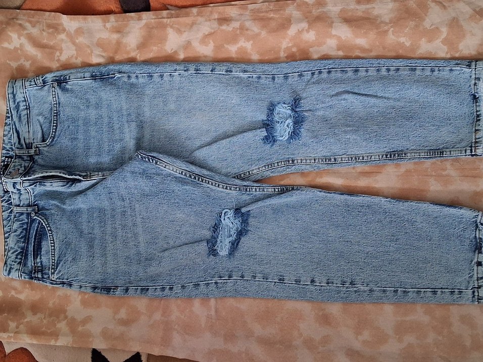Düğmeli, bol kesim ve midi boy kadın kot pantolon. Gri mavi tonlarında, gündelik kullanıma uygun, rahat sokak stiliyle uyumlu.