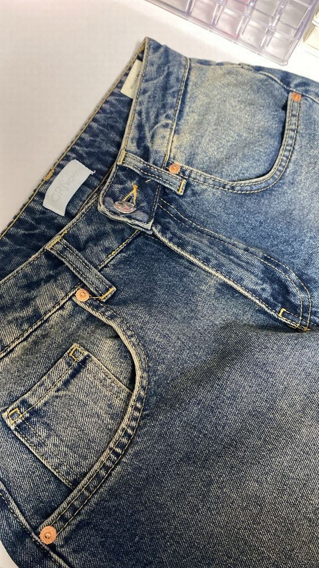 Düğmeli Gri Mavi Kadın Kot Pantolon