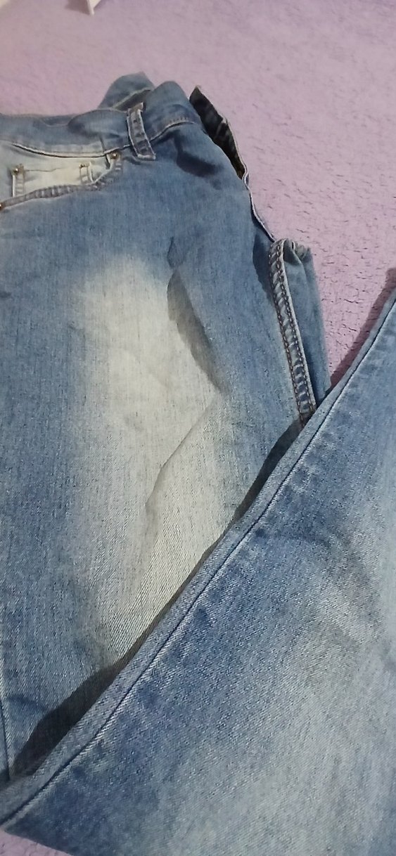 Düğmeli, gri mavi renklerde, bol kesim midi boy kadın kot pantolon. Günlük ve sokak stiline uygundur.