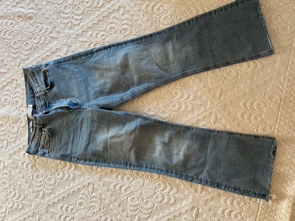 Gri renk düğmeli, midi boy, bol kesim kadın kot pantolon. Denim kumaştan, günlük rahat kullanıma uygun.