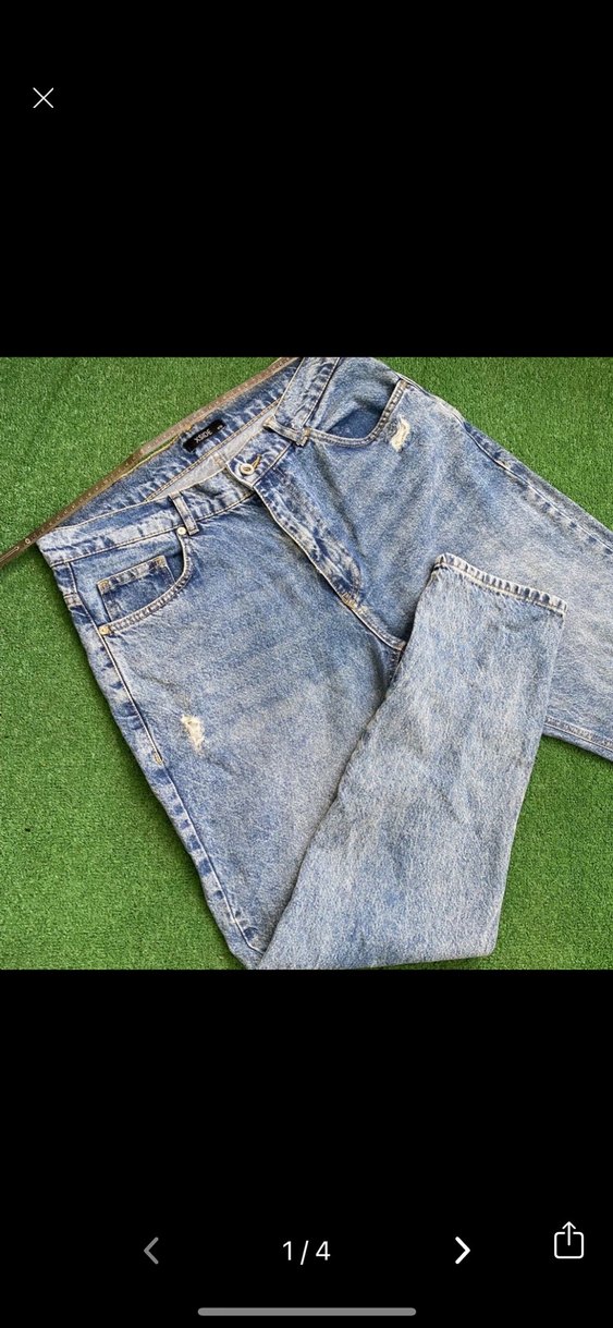 Düğmeli ön kısmı ve midi boyu olan gri renk erkek kot pantolon. Günlük sokak stili için uygun, rahat kesim. Bel 42