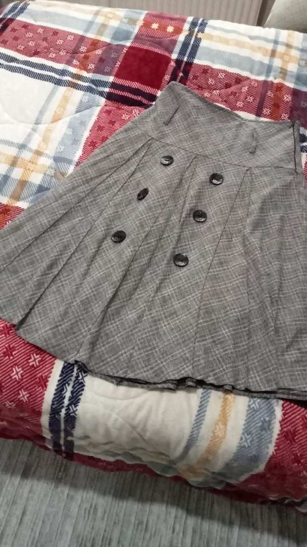 Düğmeli Gri Midi Etek