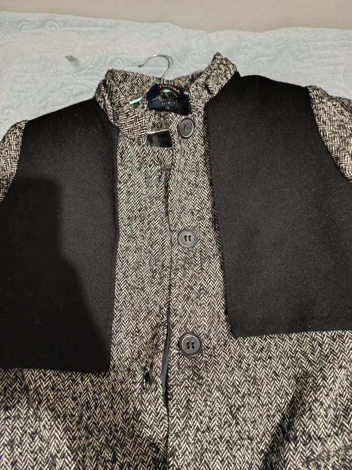 Düğmeli, yaka detaylı, sentetik kumaştan yapılmış, uzun kollu, gri midi uzunlukta, günlük kullanıma uygun Uzun kaban.