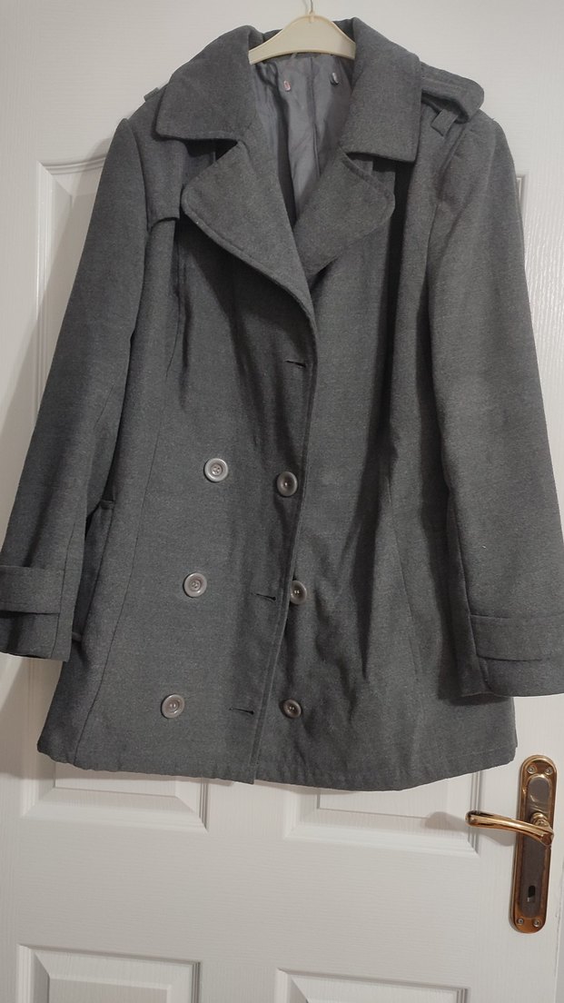 Düğmeli önü ve kesik yaka detayıyla gri midi kaban. Uzun kollu ve normal kesim, ofis kullanımı için uygun. Sentetik kumaştan yapılmıştır. En 53 boy 85