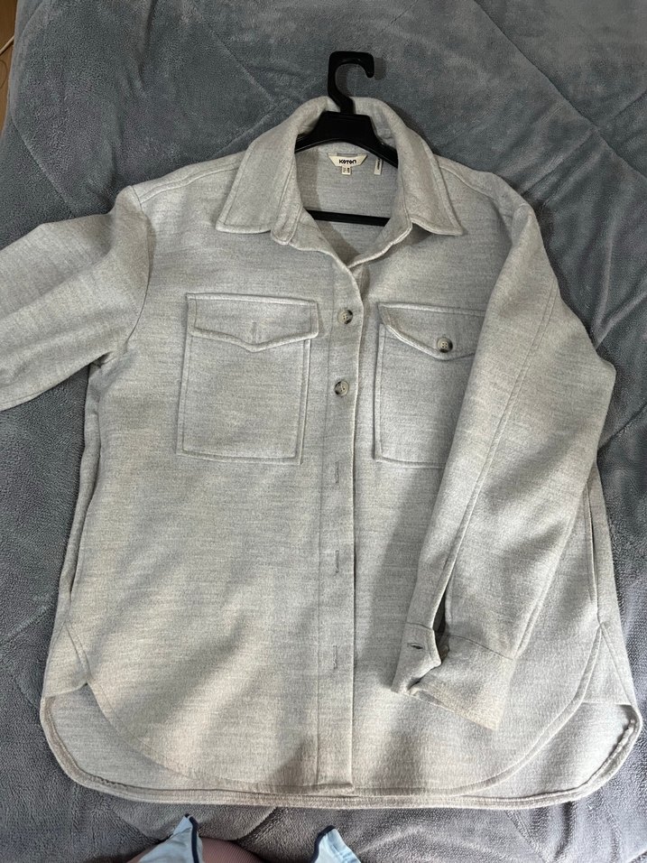 Gri midi ceket, uzun kollu ve düğmeli tasarıma sahip. Notlu yaka ve bol kesimiyle rahat bir görünüm sunar. İki göğüs cebi bulunur, günlük kullanıma uygundur.