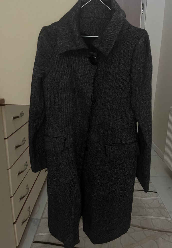 Düğmeli Gri Midi Kadın Kaban