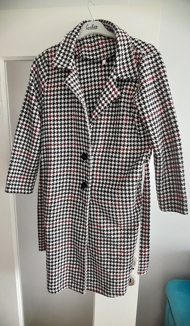 Gri renkte, düğmeli ve kazayağı desenli midi uzunlukta kadın kaban. Notlu yaka ve uzun kolludur, rahat kesimi ile günlük kullanıma uygundur.