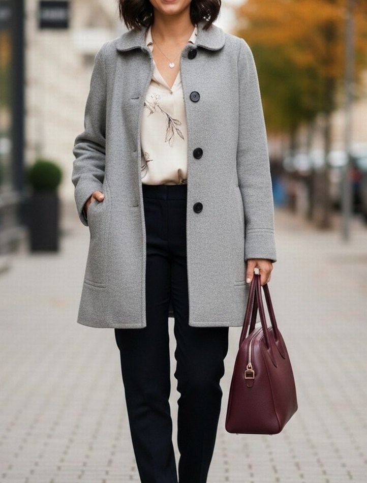 Düğmeli Gri Midi Kadın Kaban