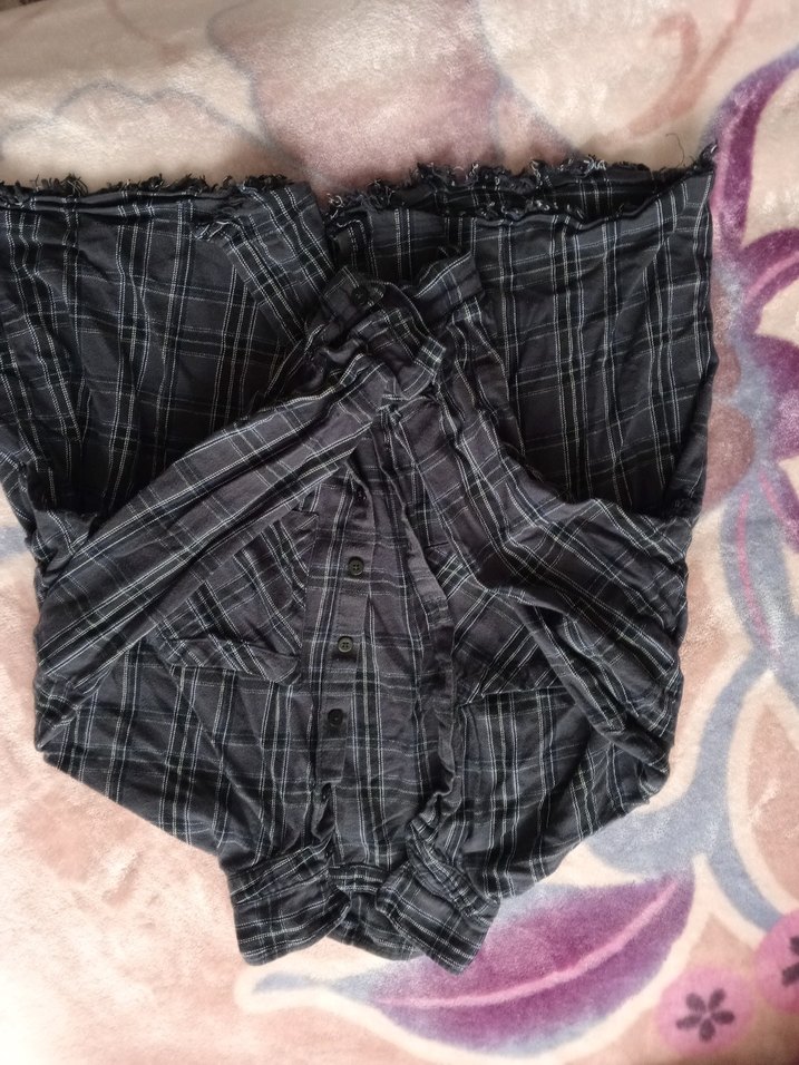 Sentetik kumaştan, düğmeli detaylı, bol kesim gri midi pantolon. Goth ve grunge punk tarzlarına uygundur.