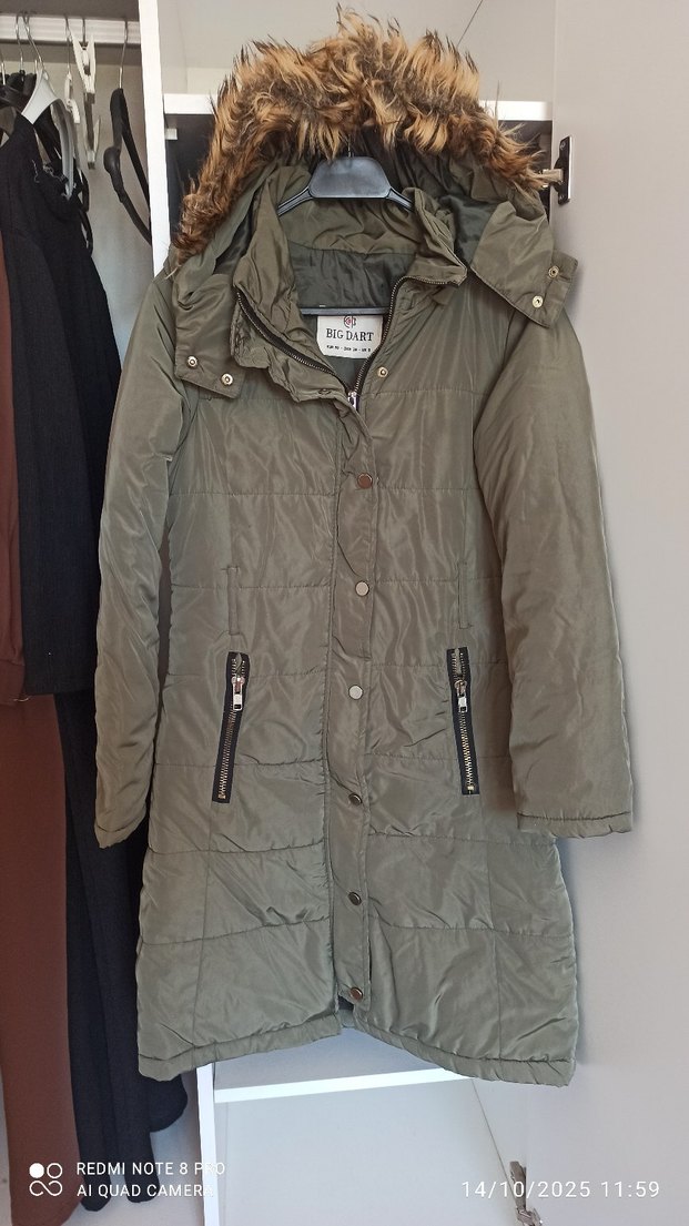 Düğmeli ve uzun kollu, gri tonlarında midi uzunlukta kadın mont. Notlu yaka ve fermuarlı cepleri bulunur, rahat sentetik kumaştan üretilmiştir.
