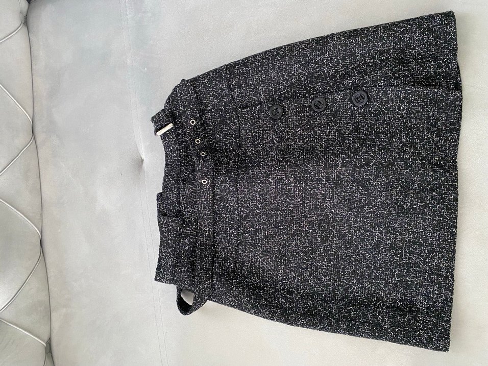 Düğmeli detaylara sahip, gri midi uzunlukta kumaş kadın etek . Ofis ve sokak stili için uygun, regular fit.