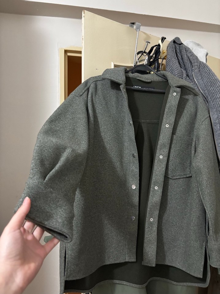 Düğmeli, gri renkte, yün kumaştan yapılmış, normal boyda, uzun kollu ve bol kesim kadın ceket. Rahat ve gündelik kullanıma uygun şık bir parça. S beden ama M L beden uyumludur