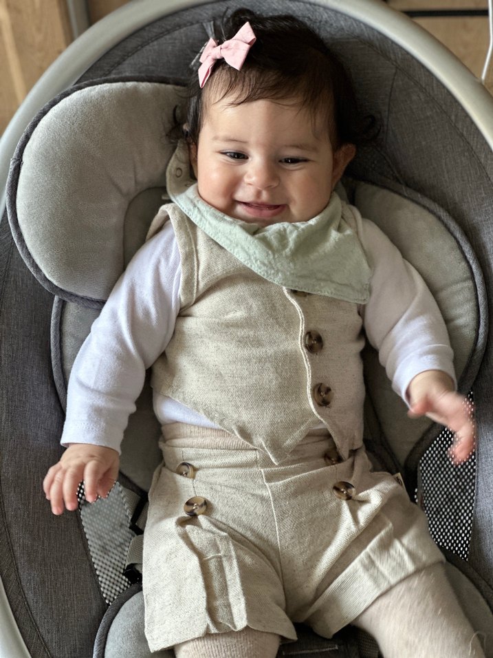Düğmeli, pamuklu, gri renkte, kolsuz ve desensiz normcore tarzı bebek takım