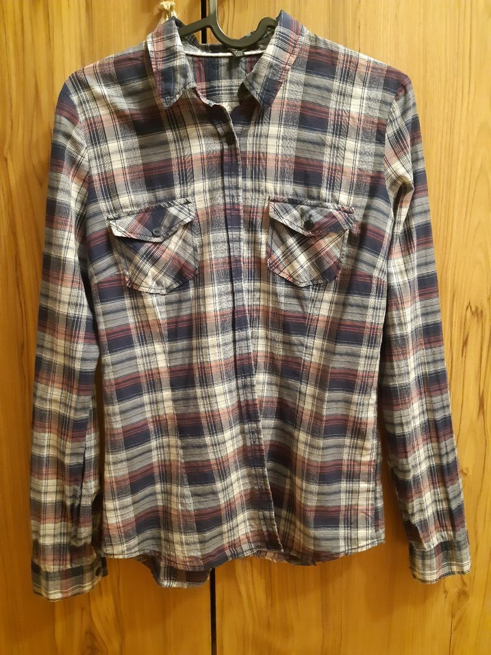 Gri pamuklu gömlek, uzun kollu ve düğmeli, yakalı tasarıma sahiptir. Rahat kesimi ve cepleriyle gündelik kullanıma uygundur. 4.resimde cebinde ufak bir kusur var