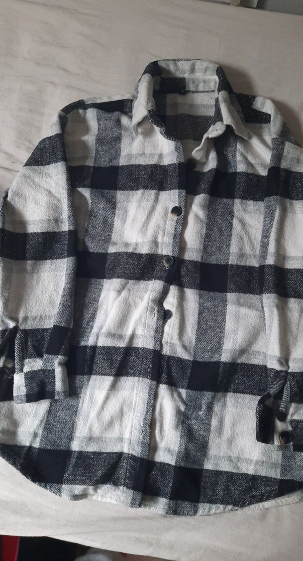 Gri pamuklu gömlek, uzun kollu, düğmeli ve kesik yaka detayına sahiptir. Salaş kesim ve normal midi boyda, günlük rahat sokak stili için uygun. Kareli deseniyle sıcak bir görünüm sunar.