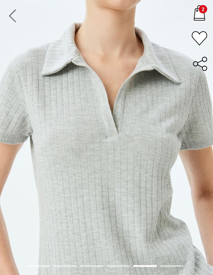 Düğmeli, V yakalı, kısa kollu gri kadın tişörtü. Yumuşak sentetik kumaştan, günlük rahat sokak stili için uygun.
