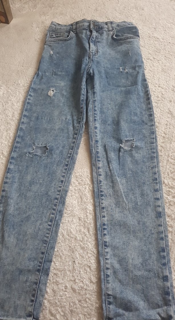 Gri renkte, düğmeli ve rahat kesim kadın kot pantolon. Midi boy ve sokak tarzına uygun, günlük kullanıma uygun hafif yırtık detaylı rahat kot pantolon. lc waikiki