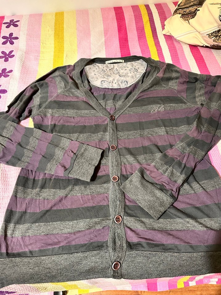 Düğmeli, uzun kollu, gri renkli, bol kesim erkek hırka. Yakalı, desen içermeyen, günlük sokak stili için uygun.