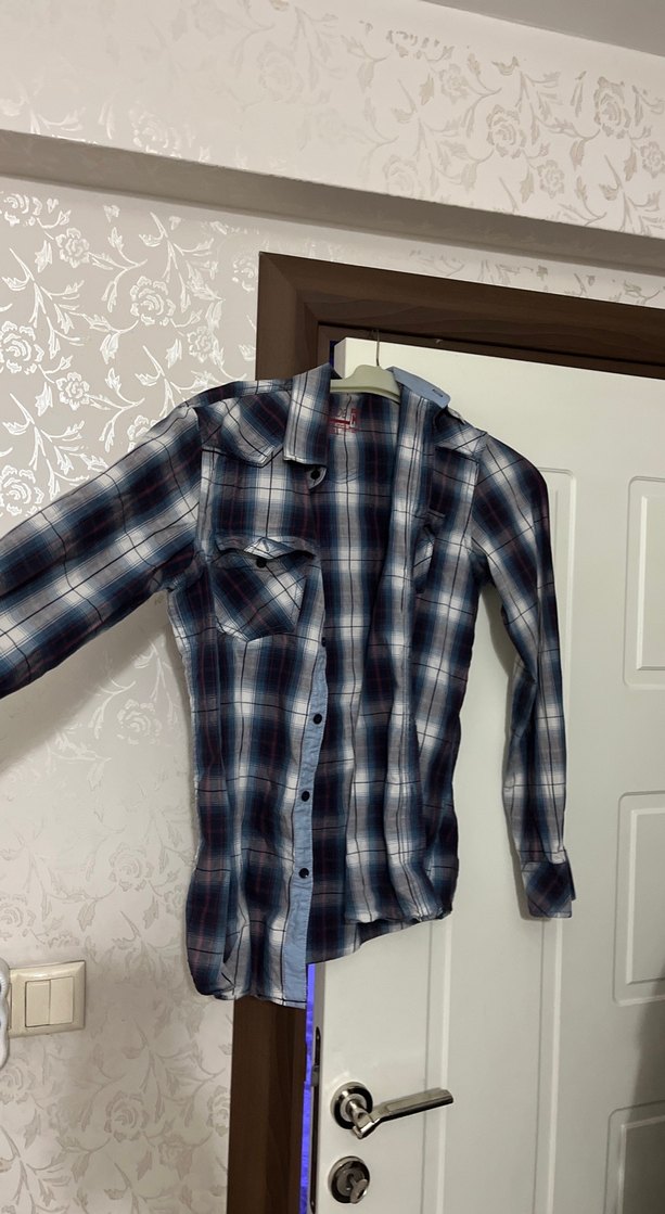 uzun kollu, düğmeli ve yakalı gömlek. Gri tie-dye desenli, pamuklu ve rahat kesim. Günlük sokak stili için uygundur.