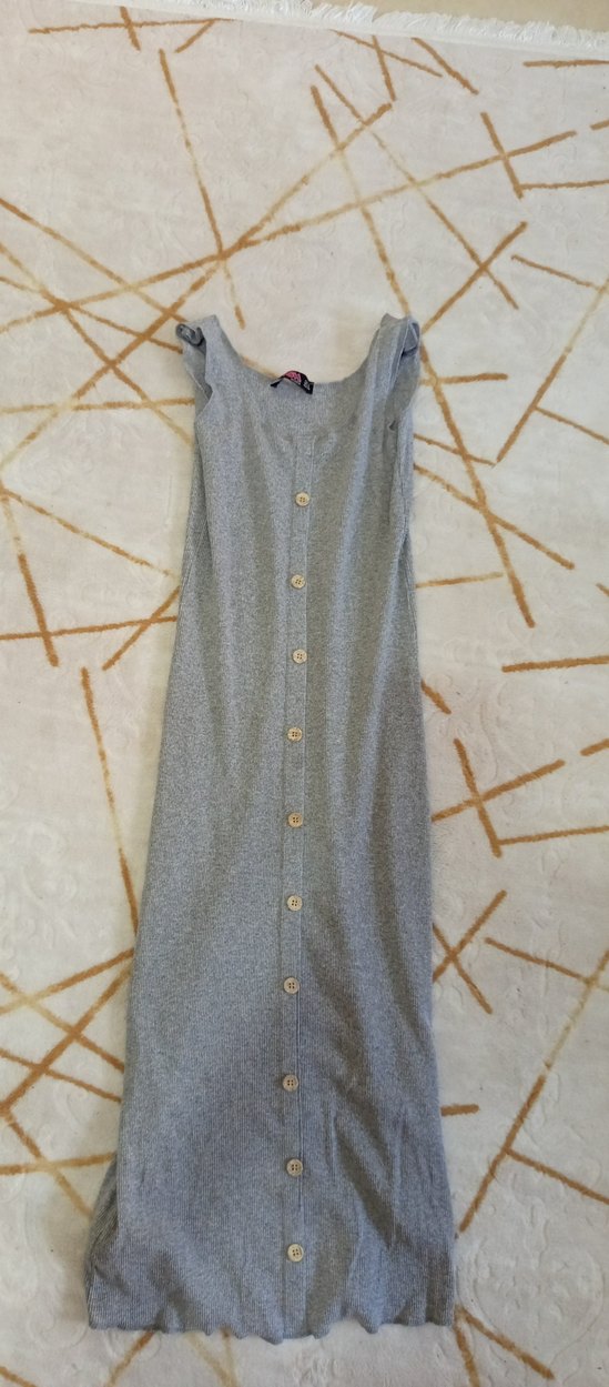Düğmeli Gri Uzun Kolsuz Elbise