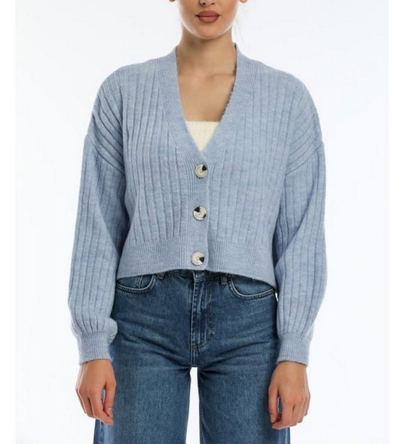 Düğmeli Gri V Yaka Kadın Hırka