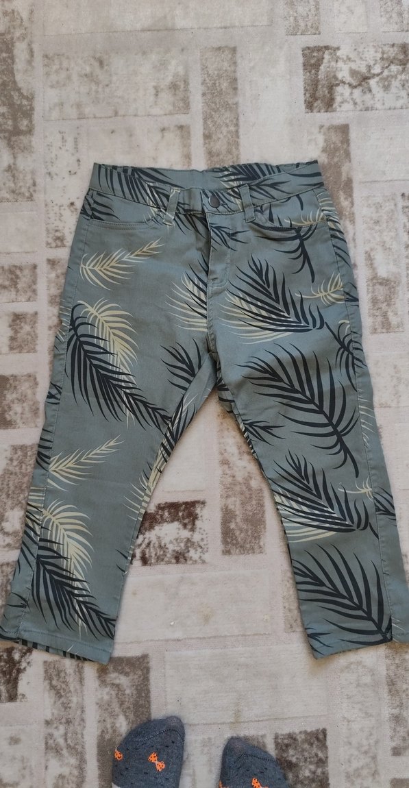 Sentetik kumaştan, düğmeli ve yaprak desenli gri renkli kadın kısa pantolon. Rahat kesimiyle dış mekan kullanımı için uygundur.