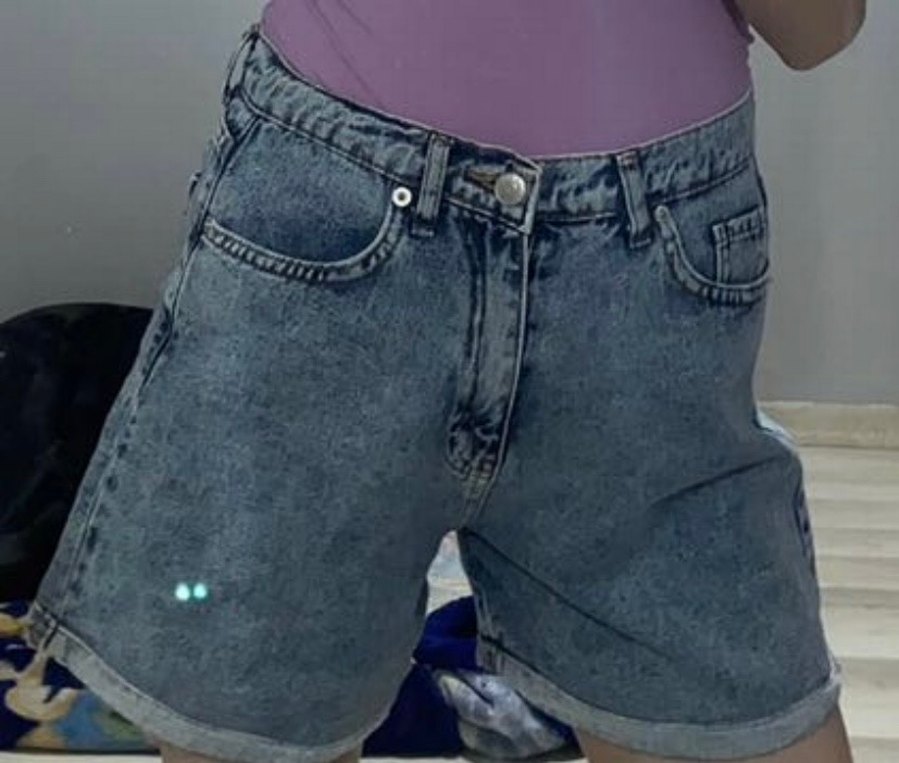 Gri batik desenli, düğmeli, vücuda oturan mini uzunlukta denim şort, günlük rahat sokak stili için uygun.