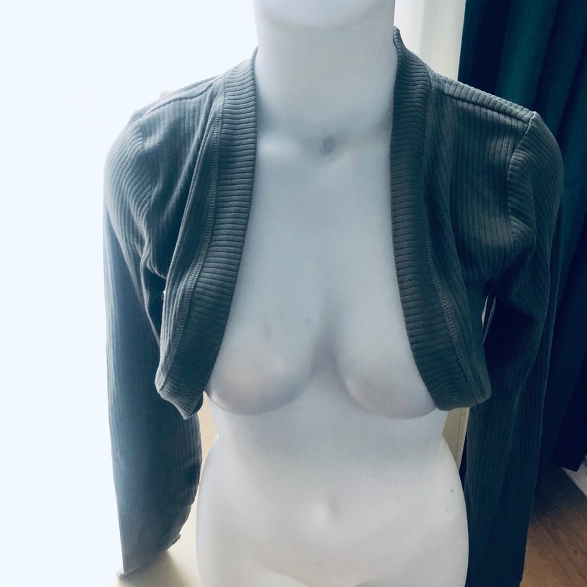 Düğmeli Gri Yüksek Yaka Uzun Kollu Bolero M beden