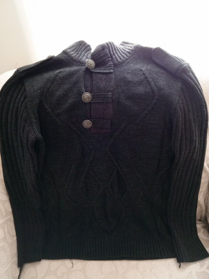 Düğmeli, yüksek yakalı ve uzun kollu erkek trikosudur. Gri renkte, fit kesim ve rahat goth tarzıyla günlük kullanıma uygundur.