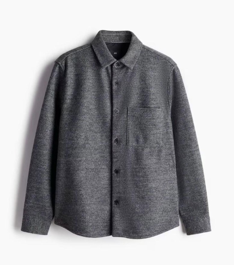 Gri yün gömlek, düğmeli ön, uzun kollu . Rahat kesim ve tek cep ile günlük sokak stiline uygundur. L beden markadi H&M