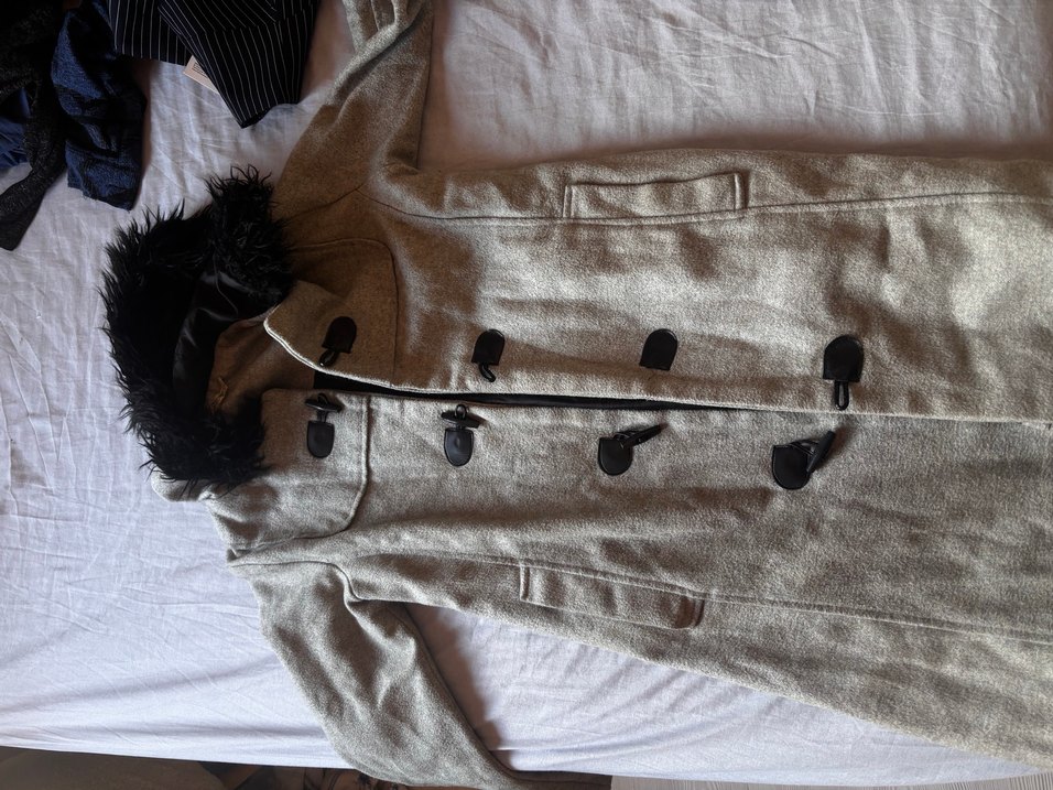 Düğmeli, gri yünuzun kollu Günlük kullanıma uygun, midi boy ve rahat bir sokak stili sunar. Severek kullandım ama aynı renkten aldığım için satıyorum