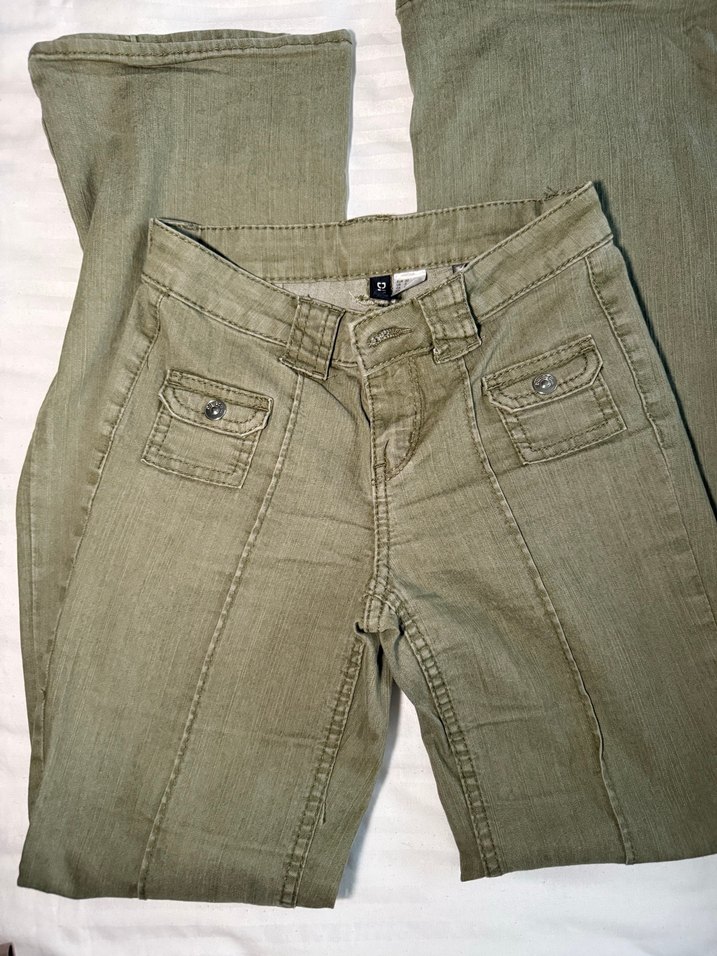 Düğmeli haki düşük bel bol baça Kadın Pantolon