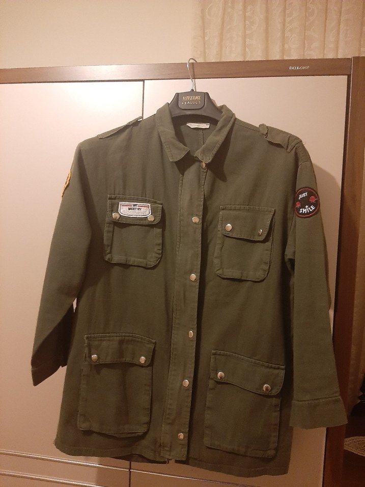 Düğmeli Haki Kadın Ceket