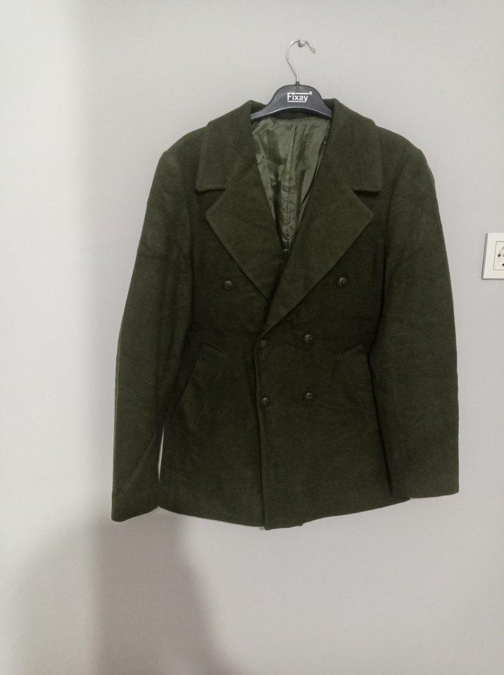 Düğmeli ön kapamalı, haki renkli erkek süet ceketi. Notlu yaka ve normal boy ile ofis kullanımı için uygundur.