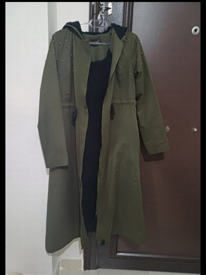 Düğmeli Haki Süet Uzun Kadın Kaban