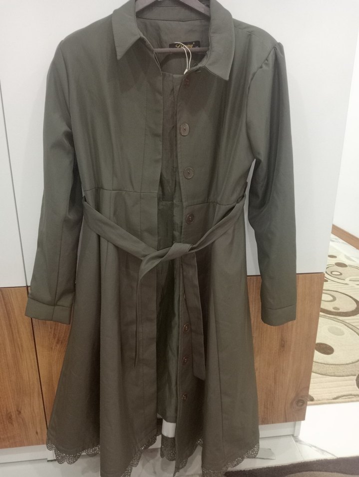 42 yazıyor ama S beden . Düğmeli ve kemerli, uzun trençkot. Notlu yaka, uzun kollu ve rahat kesim. Yumuşak sentetik kumaştan, günlük ve ofis kullanımı için uygundur.