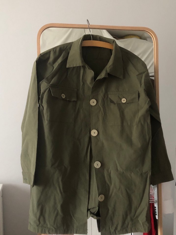 Düğmeli Haki yağmurluk paraşüt ceket zara manuka lamelif suud