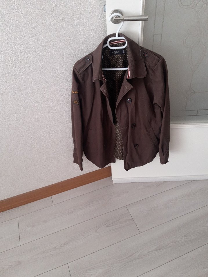 Düğmeli haki yeşil coton kadın ceket, notlu yaka ve uzun kolludur. Normal boyda, rahat kesim ve günlük kullanıma uygundur.